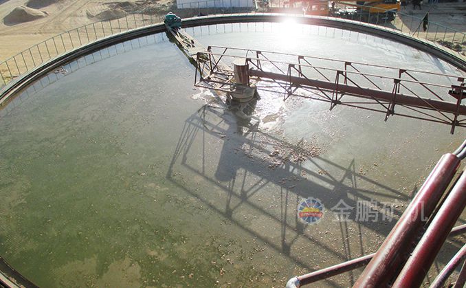 礦漿由給礦筒給入,自由沉降于耙子區的礦漿受刮板的壓力進一步濃縮,由耙子逐漸刮向池子中心,由排礦口靠重力排入下一層池子中,清水經分配箱進入最下層對物料進行洗滌,最下層的溢流返回分配箱進入上層對物料進行洗滌,第一層的溢流經溢流堰排出,經兩次洗滌的物料經底部排出.
