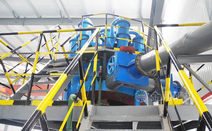 該流程的特點是:原礦一次磨礦后經水力旋流器分級,粗粒級和細粒級分別處理;粗粒級采用螺旋溜槽重選,及時獲得粗粒合格精礦;細粒級采用弱磁-強磁-反浮選;確保獲得好的選別指標和高品位的細粒精礦;重選中礦二次磨礦,返回旋流器分級作業。全流程的精礦粒度組成主要以重選粗粒精 礦為主,反浮選堿性細粒精礦量較小,不像連續磨礦-弱磁-強磁一反浮選流程容易引起過濾困難。