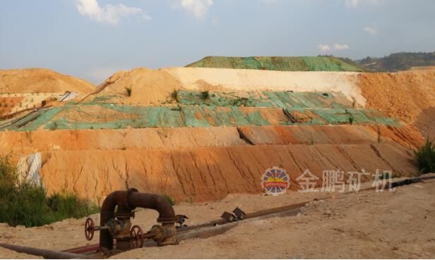 金礦堆浸就是將低品位的金礦石破碎至一定粒度(或造粒),堆積在由瀝青、混凝土或塑料布等材料鋪筑的防漏底墊上,用低濃度氰化物、堿性溶液、無毒溶劑或稀硫酸等溶液在礦堆上噴淋,使金溶解,含金的溶液從礦堆上滲濾出來,然后用活性炭吸附或鋅粉置換沉淀等方法回收金。